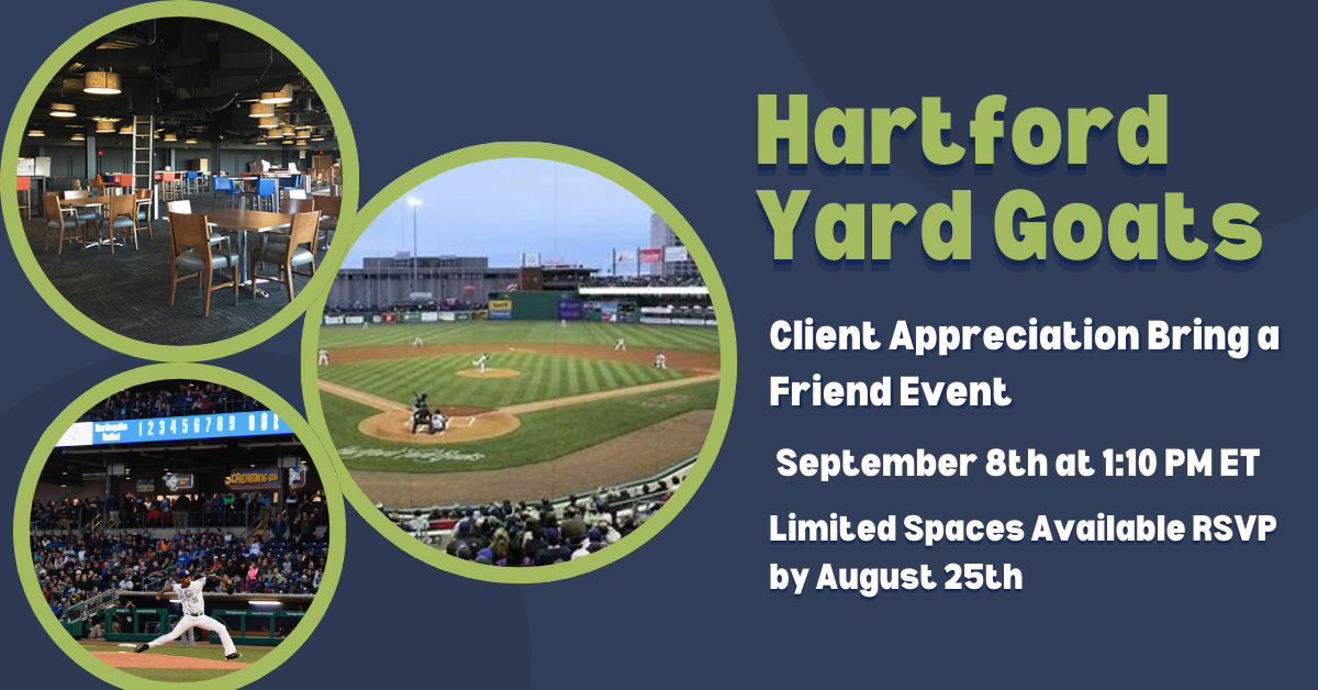 RGB Financial would like to invite you to an afternoon of baseball, food, and fun at the Hartford Yard Goats Baseball Game. We're thrilled to host this Client Appreciation event and you're welcome to bring a friend!